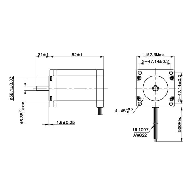 2 Phase 3A 6.35mm 21kgcm 57mm Nema 23 Hybrid Stepper Motor Images |