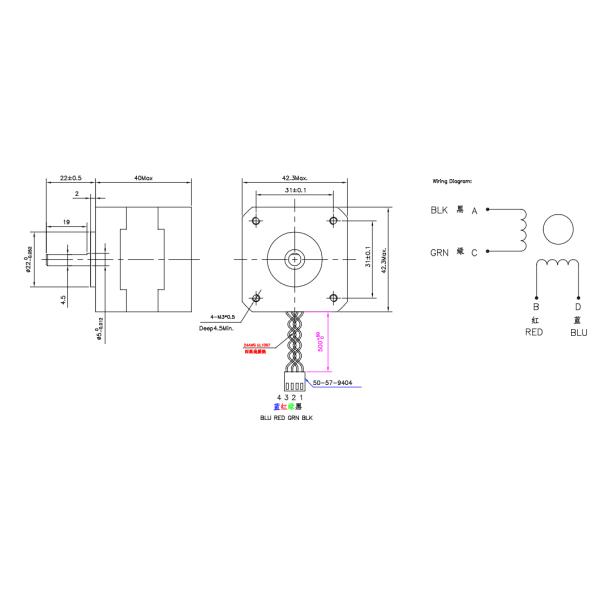 Product Type : NEMA 17 Hybrid Stepping Motor